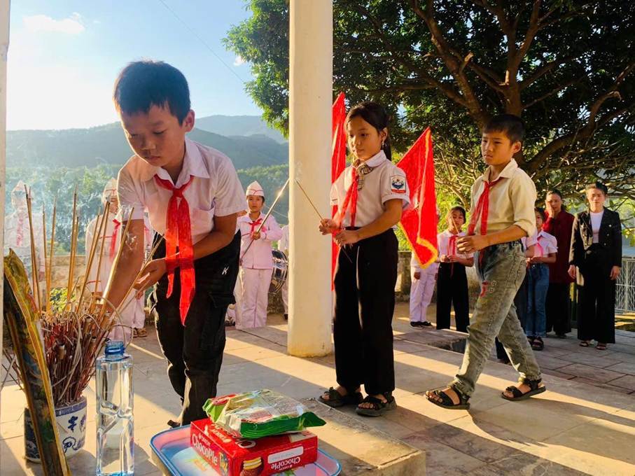 Bên cạnh đó, học sinh còn tham gia các hoạt động như dâng hương tưởng niệm các anh hùng liệt sĩ, biểu diễn văn nghệ, hoạt động với chủ đề “Biết ơn chú bộ đội”, thăm và chúc mừng tổ công tác biên phòng Na Sang.