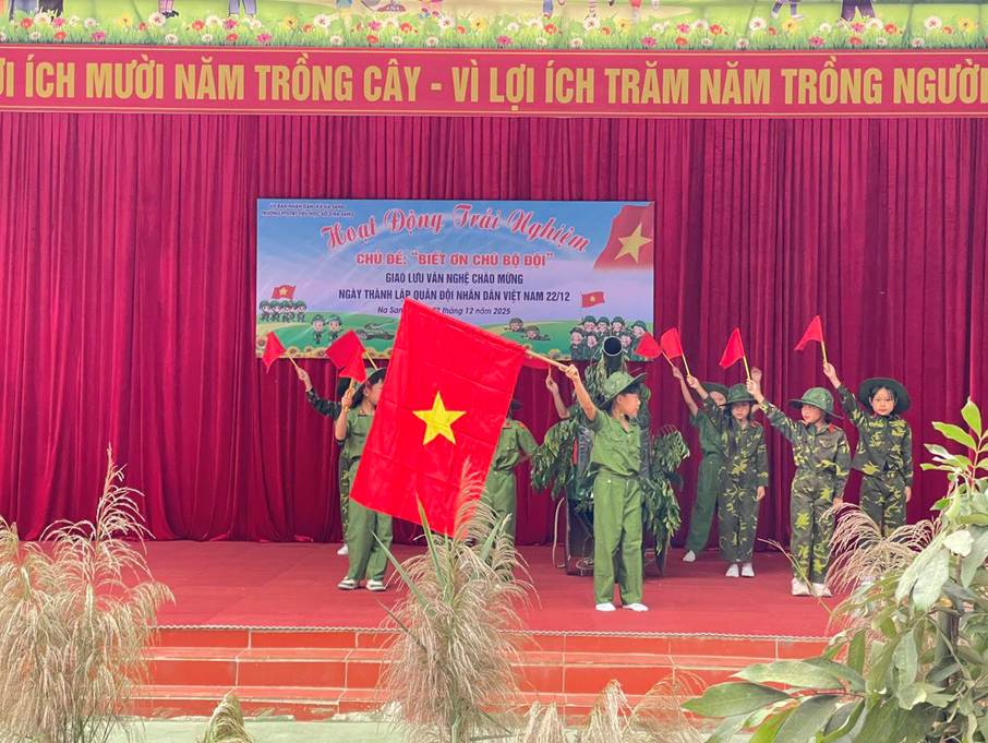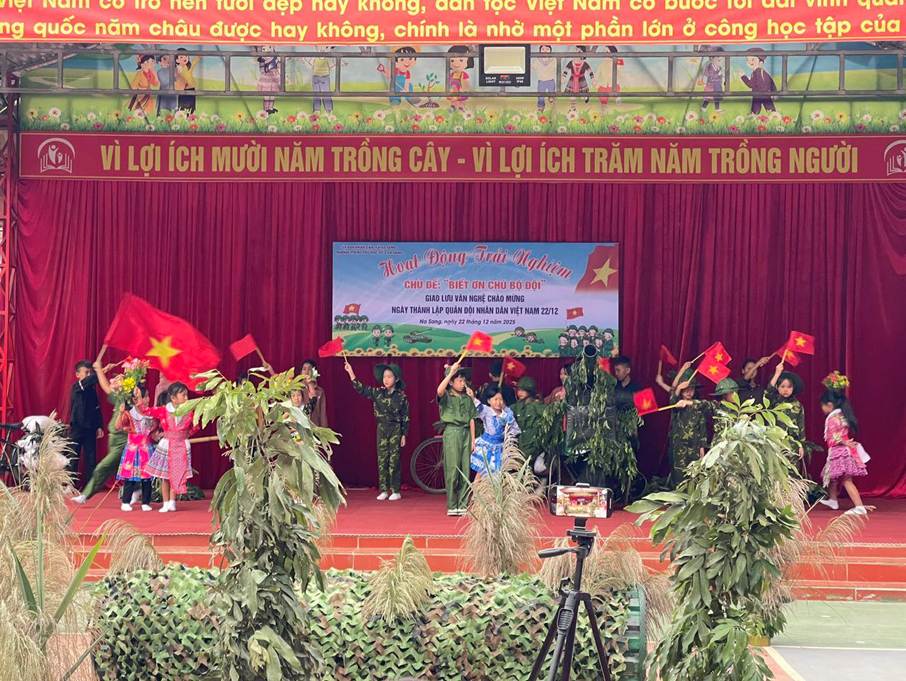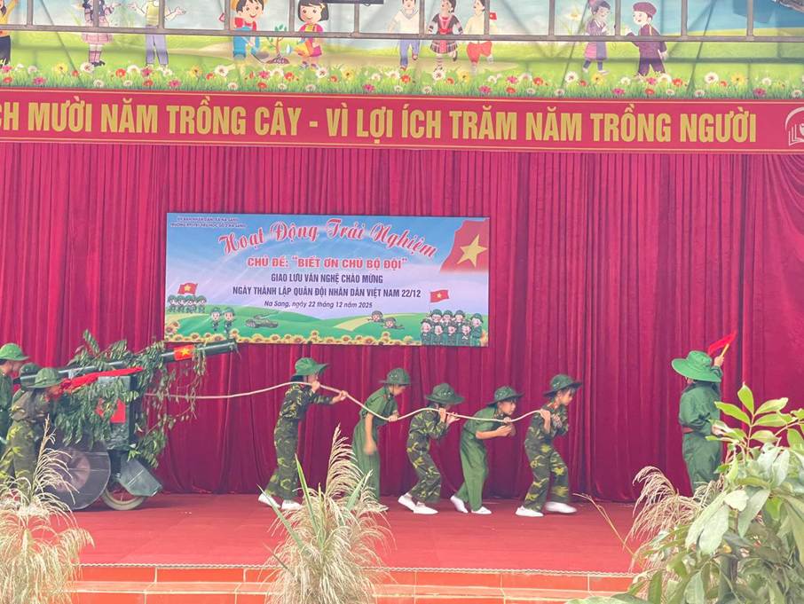 Hòa chung không khí cả nước hướng về kỷ niệm 81 năm Ngày thành lập Quân đội nhân dân Việt Nam (22/12/1944 – 22/12/2025), thầy và trò trường PTDTBTTH số 2 Na Sang đã tổ chức nhiều hoạt động trải nghiệm ý nghĩa, thiết thực, góp phần giáo dục truyền thống yêu nước, lòng tự hào dân tộc và ý thức trách nhiệm bảo vệ Tổ quốc cho các em học sinh.