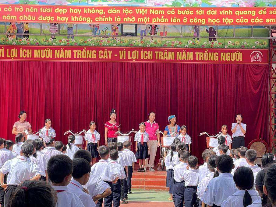 Sáng ngày 03/10/2025, Trường PTDTBT Tiểu học số 2 Na Sang vui mừng đón nhận món quà ý nghĩa từ cô Phan Thị Hồng Thu cùng nhóm những người bạn tỉnh Thái Nguyên. Đoàn đã trao tặng 05 chiếc xe đạp cho các em học sinh có hoàn cảnh khó khăn, nỗ lực vươn lên trong học tập. Những phần quà thiết thực này không chỉ giúp các em có thêm phương tiện đến trường thuận lợi hơn, mà còn là nguồn động viên to lớn, tiếp thêm nghị lực để các em vượt qua khó khăn, phấn đấu học tập tốt, nuôi dưỡng ước mơ cho tương lai. Nhà trường trân trọng ghi nhận và bày tỏ lòng biết ơn sâu sắc tới tấm lòng nhân ái của cô Phan Thị Hồng Thu cùng nhóm những người bạn tỉnh Thái Nguyên. Sự sẻ chia kịp thời này đã lan tỏa tinh thần yêu thương, trách nhiệm cộng đồng, góp phần cùng nhà trường đồng hành trên con đường gieo chữ nơi vùng cao còn nhiều gian khó.