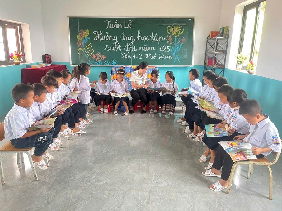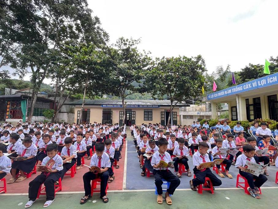 Ngay sau lễ phát động, thầy- trò nhà trường cùng các em học sinh tham gia hoạt động đọc sách. Các em được giới thiệu những cuốn sách bổ ích, tham gia đọc, chia sẻ nội dung và thảo luận, qua đó bồi đắp niềm yêu thích đọc sách, góp phần hình thành kỹ năng tự học, tự nghiên cứu.