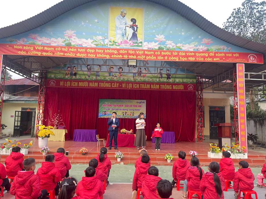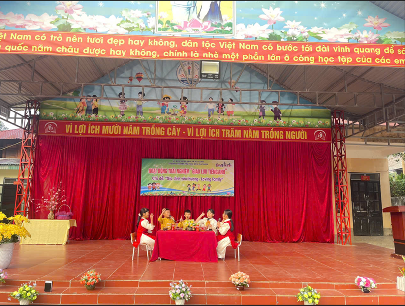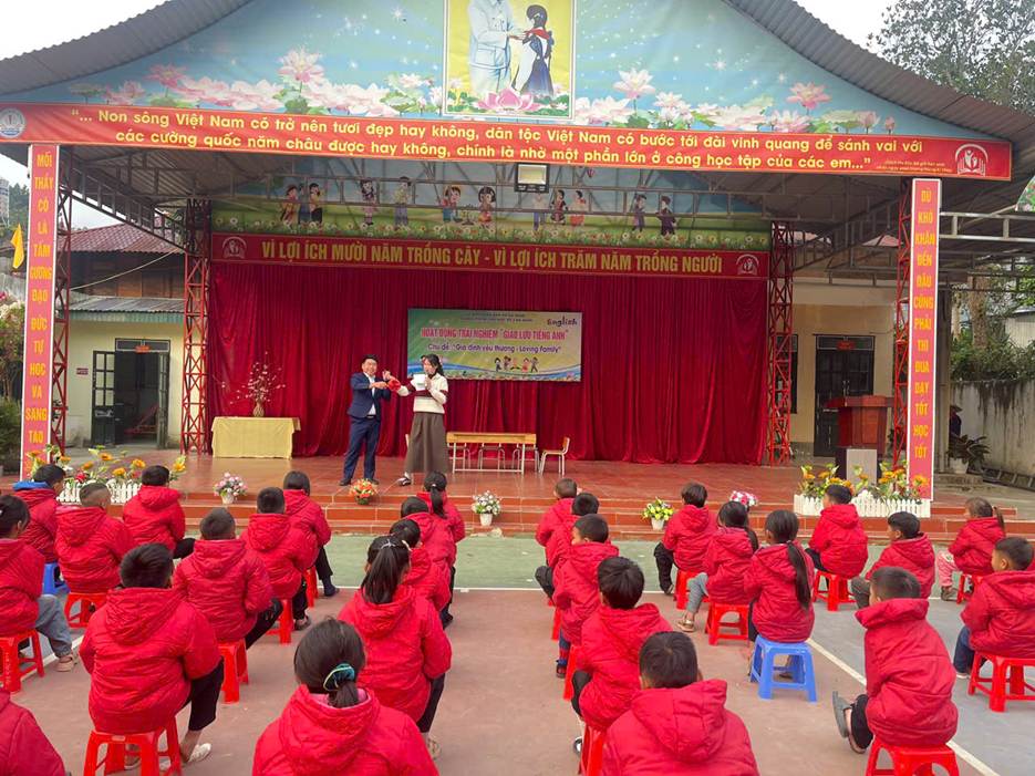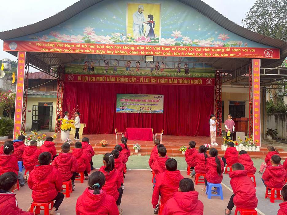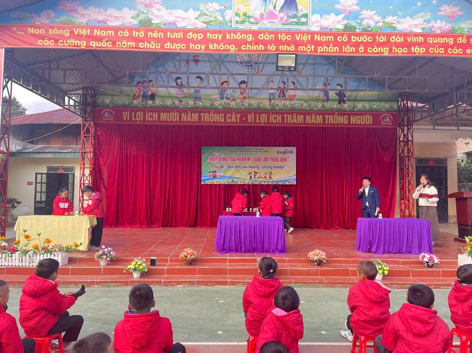 Ngày 12/01/2026, Trường PTDTBT Tiểu học số 2 Na Sang tổ chức Hoạt động trải nghiệm – Giao lưu Tiếng Anh với chủ đề “Gia đình yêu thương – Loving Family” Nhằm tạo môi trường học tập tích cực và nâng cao hứng thú học Tiếng Anh cho học sinh, nhà trường đã tổ chức chương trình với ba nội dung chính: kịch Tiếng Anh, Hỏi – đáp về Gia đình và Trò chơi. Thông qua các hoạt động trên, học sinh được rèn luyện kỹ năng giao tiếp, ghi nhớ từ vựng và mẫu câu một cách tự nhiên, giới thiệu được các thành viên trong gia đình. Hoạt động diễn ra trong không khí vui tươi, sôi nổi, thu hút sự tham gia tích cực của học sinh. Qua đó góp phần bồi dưỡng tình cảm gia đình và niềm yêu thích học tập môn Tiếng Anh cho các em.