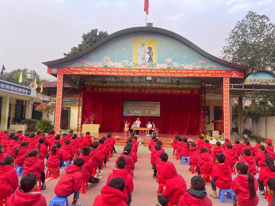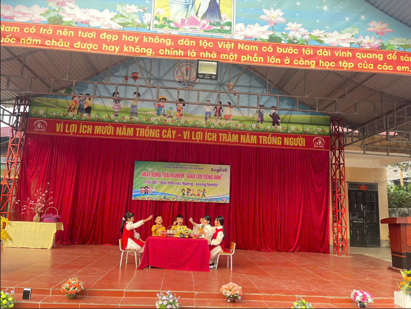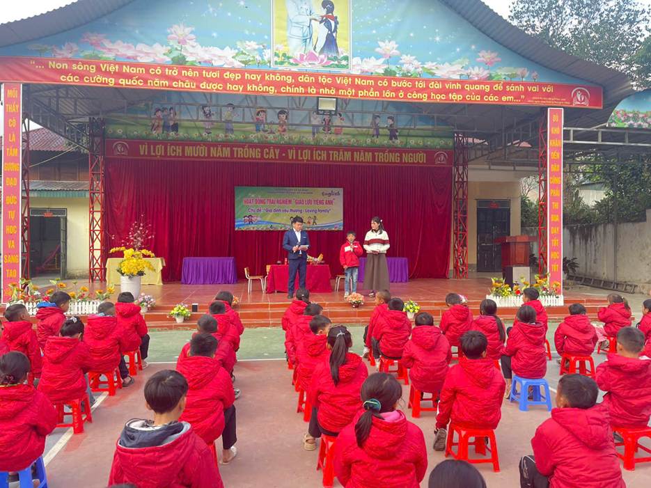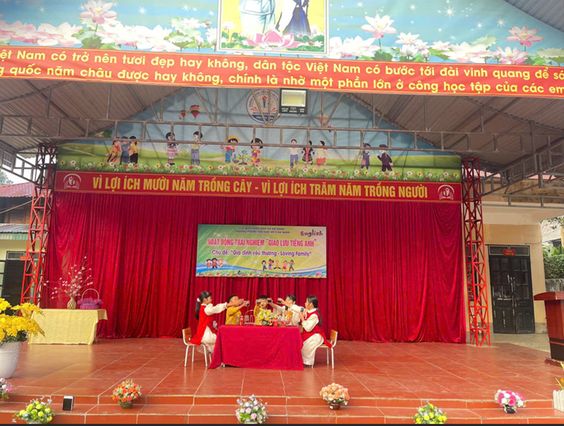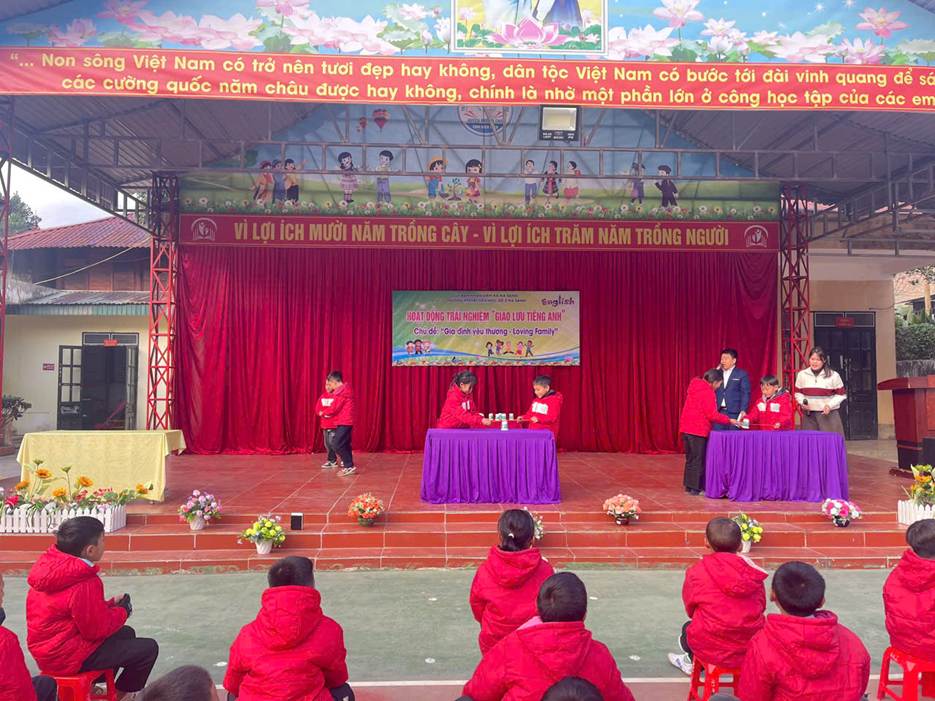 Ngày 12/01/2026, Trường PTDTBT Tiểu học số 2 Na Sang tổ chức Hoạt động trải nghiệm – Giao lưu Tiếng Anh với chủ đề “Gia đình yêu thương – Loving Family” Nhằm tạo môi trường học tập tích cực và nâng cao hứng thú học Tiếng Anh cho học sinh, nhà trường đã tổ chức chương trình với ba nội dung chính: kịch Tiếng Anh, Hỏi – đáp về Gia đình và Trò chơi. Thông qua các hoạt động trên, học sinh được rèn luyện kỹ năng giao tiếp, ghi nhớ từ vựng và mẫu câu một cách tự nhiên, giới thiệu được các thành viên trong gia đình. Hoạt động diễn ra trong không khí vui tươi, sôi nổi, thu hút sự tham gia tích cực của học sinh. Qua đó góp phần bồi dưỡng tình cảm gia đình và niềm yêu thích học tập môn Tiếng Anh cho các em.